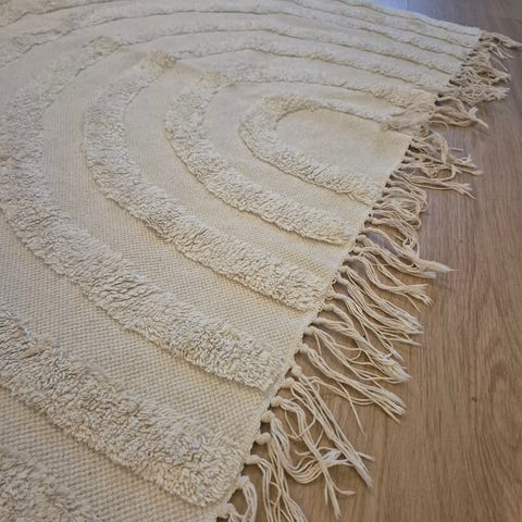 Jysk matto, beige. Suorakaiteen muotoinen, yksivärinen matto. Kumipohja, joten pysyy hyvin paikallaan. 140x200cm. Siistikuntoinen.