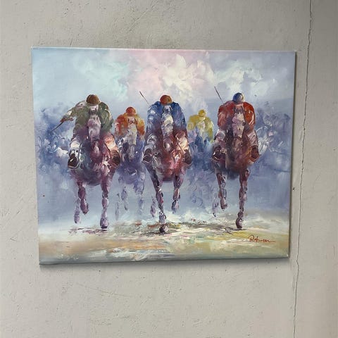 Hevosta esittävä taulu, jossa vaaleanruskean ja beigen sävyinen hevonen abstraktilla taustalla. Värimaailma on neutraali, pääväreinä beige, harmaa ja valkoinen, lisäksi tummempia ruskeita yksityiskohtia. Sopii sisustuselementiksi esimerkiksi olohuoneeseen tai muuhun asuintilaan. Taulu on suorakaiteen muotoinen ja kiinnitetty seinälle vaijeriripustuksella kuvien mukaisesti. Koko noin 120x80cm