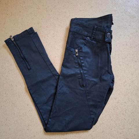 H&M skinny -malliset naisten farkut. Väri musta ja materiaali denim. Kokomerkintä 27/32, matalavyötäröiset. Säilytyksessä rypistyneet.