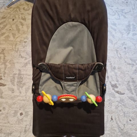 Harmaa Baby Björn Sitteri ja lelukaari. Täysin ehjä, käytetty siisti kunto. Vain nouto Kempeleestä.