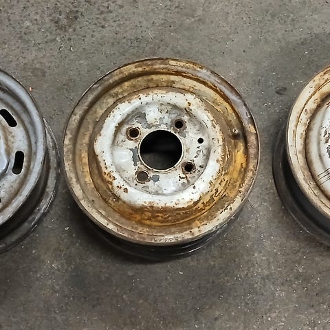 Muistaakseni 1rengas laskee ilmat pihalle. (Veikkaan venttiiliä) itse vanteet ovat muuten hyvässä kunnossa joten maalaamisella saisi oikein näyttävät. Vanteet ovat olleet Datsun 720 picupin alla.