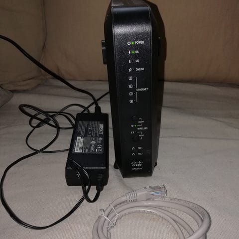 Siistikuntoinen käytetty ARRIS TG2482B kaapelimodeemi lähiverkkoyhteyksiä varten sekä liitäntä kaapeliverkkoon. Mukana virtalähde, antennikaapeli, ethernetkaapeli , seinäliitin antennikaapelia varten sekä käyttöohje. Soveltuu kaapelilaajakaistayhteyden jakamiseen useille laitteille kotiverkossa kaapelin kautta.