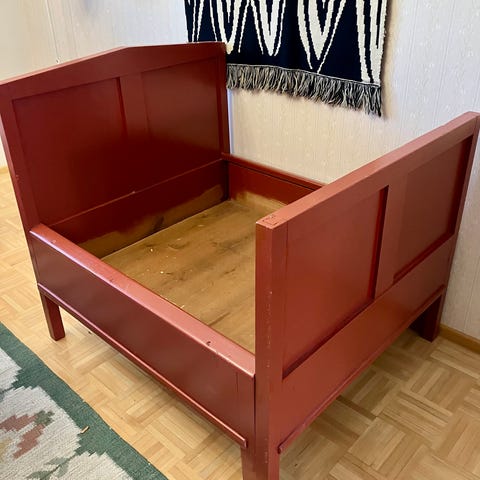 Vanha täyspuinen upea sänky. Säilytetty kuivassa aitassa vuosia. Vaatii siis toki kunnon pesun. Sängyn koko 176x94cm. Korkein kohta (pääty)62cm, matalin (laita) 46cm.