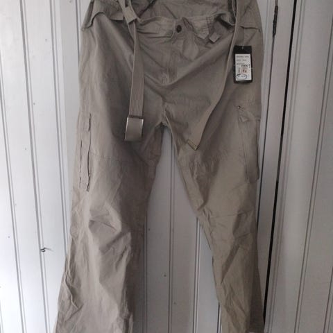 Surplus Tex camoflage-väriset reisitaskuhousut. Tosi vähän käytetyt, hyvässä kunnossa. Isoksi jääneet. Koko: XL. 100% puuvillaa. Vyö mukana. Kiristysnyörit lisäksi vyötärössä ja lahkeissa.
