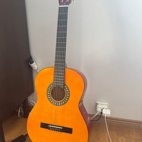 Hyväkuntoinen akustinen kitara, kielet varmaan kaipaisi päivittämistä.