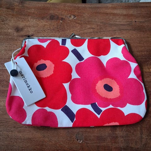 Marimekon klassinen Pieni Kukkaro, joka on valmistettu Mini Unikko -kuosisesta puuvillasta.