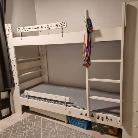 Täysin ehjä ja toimiva Unipuu kerrossänky, menee kuljetusta varten pienempiin osiin. Patjat ei kuulu kauppaan.