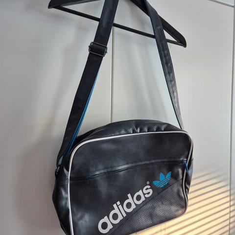 Materiaalina kangas, väriltään sininen. Laukussa on säädettävä olkahihna ja vetoketjullinen etutasku sekä vetoketjullinen päätasku. Korkeus mitattuna noin 18 cm ja leveys noin 13 cm.