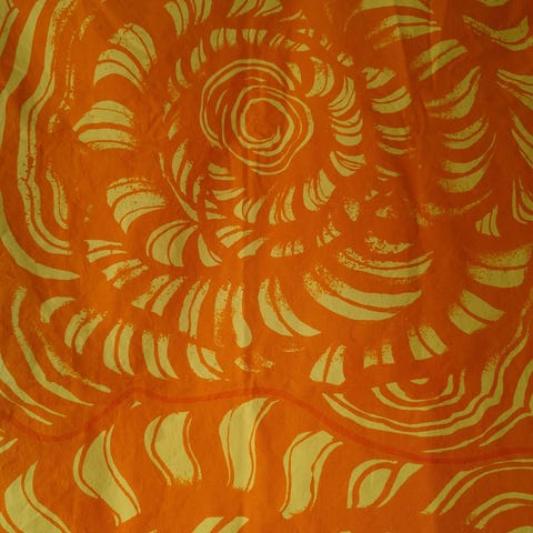 61cmx68cm vanha kangastilkku keltainen Marimekon Vihkiruusu kuosi. 50/60-luvulta.