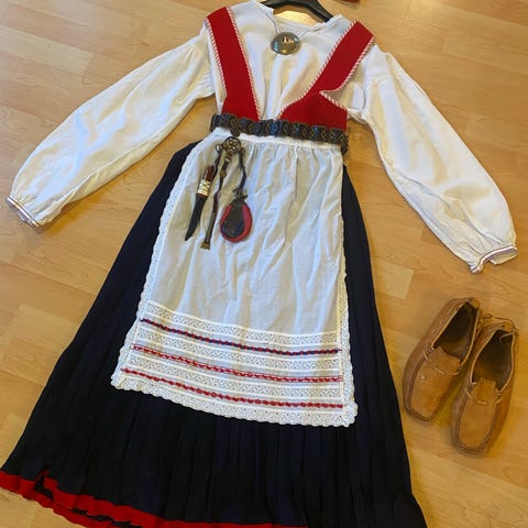 Pyhäjärven kansallispuku naiselle tarvikkeineen (paita ja hartiushame, esiliina, lappavyö ja vyölliset sekä säppäli). Koko n. 42/44. Kuvassa n. 162 cm henkilön päällä. Tervetuloa sovittamaan Loimaalle. Mieluiten nouto.