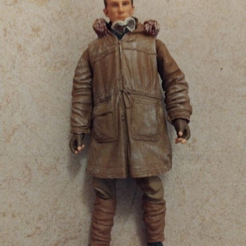 Muovinen Danny mieshahmo-lelufiguuri. Hahmolla on harmaat housut, harmaat hihat, musta liivi ja punainen kaulus sekä valkoiset kengät. Soveltuu leikkeihin tai kokoelmaan. Korkeus arviolta muutamia senttimetrejä (tarkka mitta ei tiedossa).