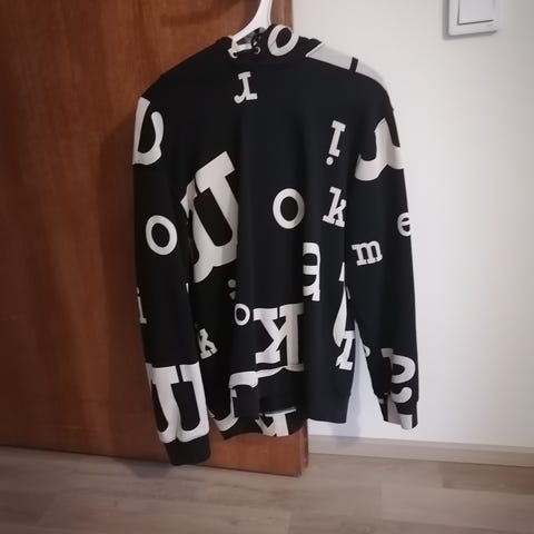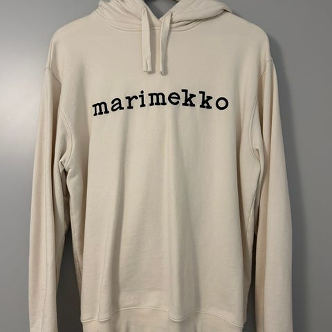 Myynnissä vähällä käytöllä ollut Marimekon Termi Logo Placement huppari koossa S. Keskellä mustalla brodeerattu teksti: ”Marimekko”.