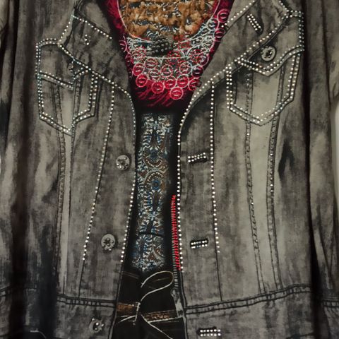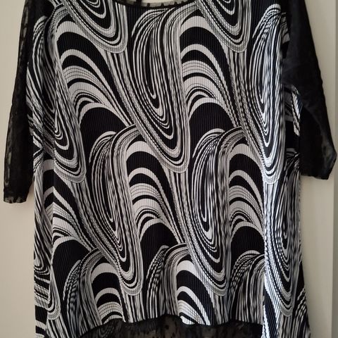 Musta juhlava koristestrassein koristeltu paita 3XL. Rinnan ympärys 124, Pituus 74. 50% polyester, 50% viskoosi.