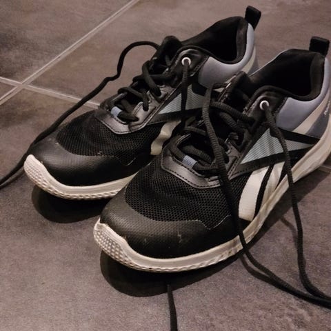 Reebok juoksukengät, koko 43. Väri musta valkoisella pohjalla. Päällinen verkkomaista tekstiiliä, joka on hengittävää. Nauhakiinnitys. Pohjassa kuvioitu kumipohja, joka tarjoaa pitoa juoksuun ja muuhun liikuntaan. Sopivat juoksuun ja yleiseen treenikäyttöön.