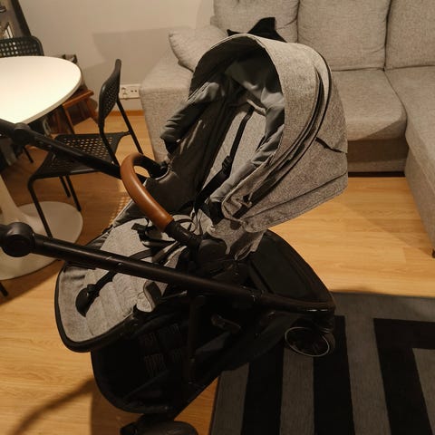 Kulkevat hyvin ja ovat muutoin ehjät, mutta työntöaisaa on päässyt lintu joskus tökkimään, kun olleet ulkokatoksessa sekä ratasosan kuomu jotenkin vääntynyt, ajaa kyllä asiansa. Kuomu myös haalistunut auringossa.