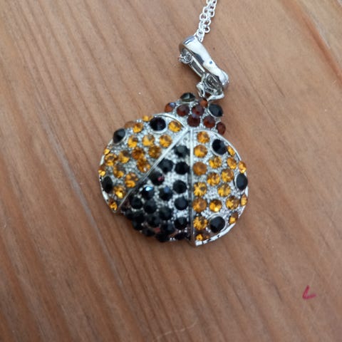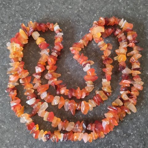Pitkä, näyttävä kaulakoru. Pituus 78 cm