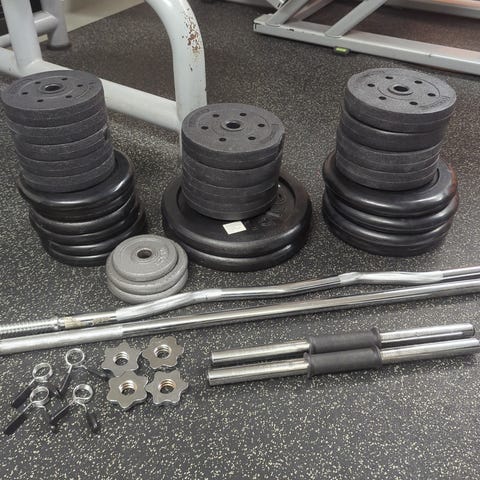 Löytyy setti missä on 1 pitkä tanko (152 cm) ja 2 lyhyttä käsipainotankoa (40 cm).