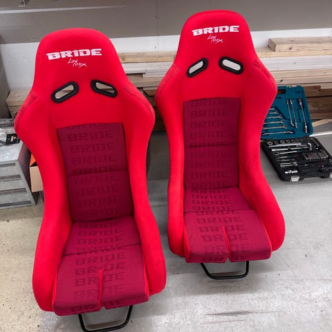 Kuvan mukaiset istuimet kiskoilla kaipailis uutta omistajaa.