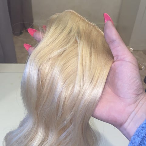 Noin 40-45cm, mustat, aitoa hiusta. Pari klipsiä repsottaa, mutta helppo korjata neulalla ja langalla.