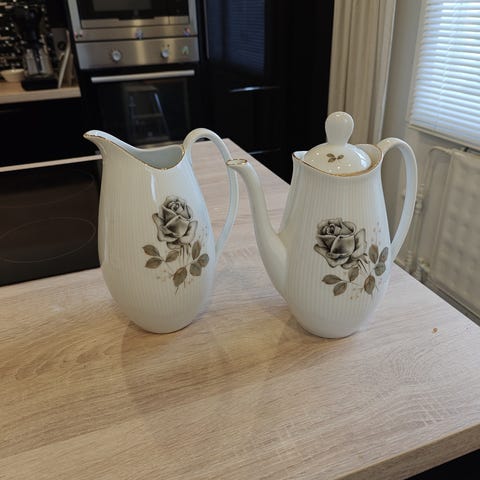 Hyvässä kunnossa. Kuppeja löytyy neljä ja lautaisia on 6. Hinnasta voi keskustella!