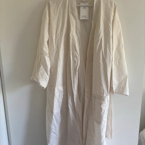 Pellava-aamutakkien värimaailma on sama kuin pellavalakanoissa. Aamutakit on suunniteltu sekä naisille että miehille, joten napitus on molemminpuolinen. Aamutakin hupun reunaan on painettu Harmajan majakkasaaren koordinaatit. Takki on pakattu pieneen pellavaiseen matkapussiin. Aamutakin mitat on esitetty viimeisessä tuotekuvassa. on suunniteltu Suomessa ja valmistettu Latviassa.