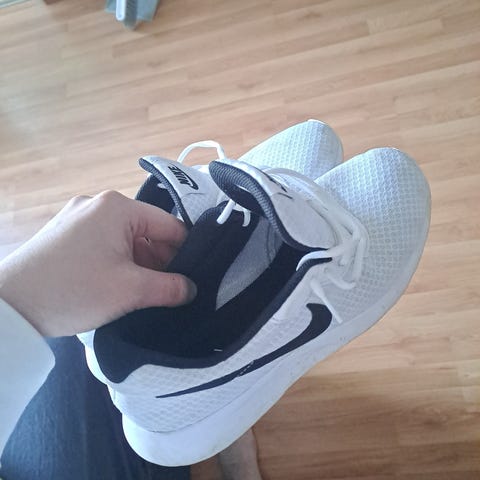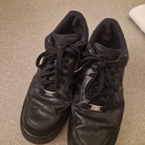 Nike tennarit, koko 46. Väriltään mustat. Päällinen mielestäni keinonahkaa. Kulumat näkyvät kuvissa. Nouto Vantaalta Vaaralasta (K-Market Kastanja).