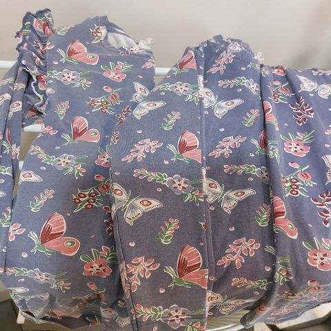Paidassa kuvan reiät hihojen saumoissa. Hameessa pientä nukkaa. Muuten hyväkuntoiset.