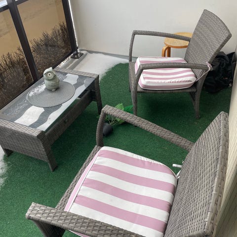 Asko classic garden parvekekaluste setti. Säilytetty ainoastaan lasitetulla parvekkeella.
