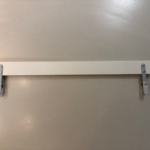 IKEA Vikare lastensängyn turvalaita. Valkoinen, metallikiinnikkeillä varustettu sängyn laita, joka kiinnitetään sängyn laidalle estämään lasta putoamasta sängystä. Sopii useimpiin IKEA -lastensänkyihin ja muihinkin, joissa laidan paksuus on 18-25 mm (kskuva ohjetarrasta). Kuvissa näkyy kiinnitystapa sekä kahden taaperon jäljiltä olevia käytön jälkiä pinnassa. Teknisesti täysin moitteeton.
