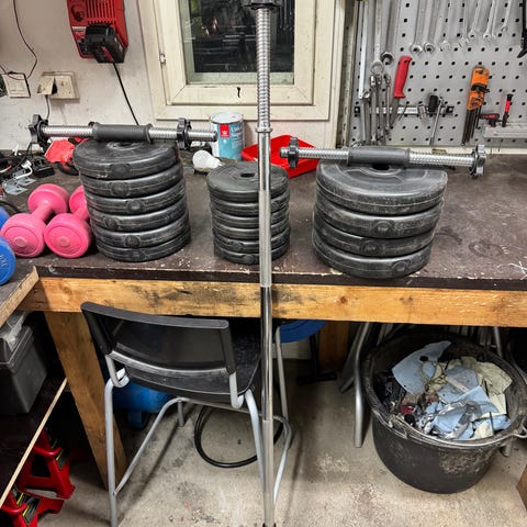 Levypainosarja 135kg + 2 tangot + käsipainotangot - 25mm reikä