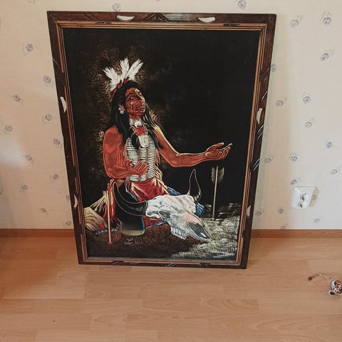 Myynnissä iranilainen taulu käsintehtynä jossa satiini kangaspohja. Taulu on hyvässä kunnossa.