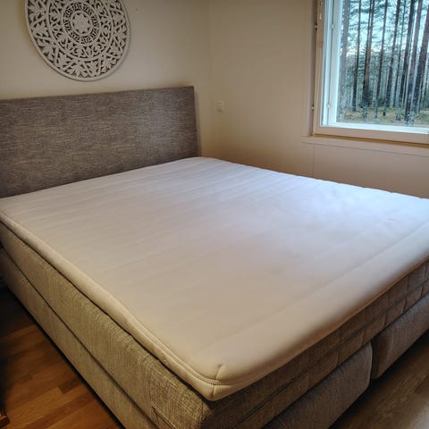 Jenkkisänky 160x200 cm. 1 joustinpatja bonnell-jousilla 322/m², pehmustettu polyeetterivaahtomuovilla. 3 cm paksu sijauspatja polyeetterivaahtomuoviytimellä. Pestävä päällinen pehmeällä, paksulla tikkauksella. Pohja koostuu 1 pehmustetusta rungosta. Sis. jalat.