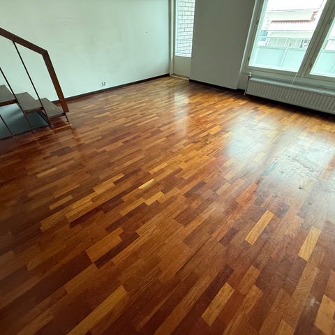 Annetaan iso määrä vinyylikorkkilankkua. Osa lankuista on vaurioitunut irroituksessa, mutta iso osa on vielä käyttökelpoista, arviolta 50m2 on siistejä, voi olla enemmänkin, niin tarkasti ei olla katsottu. (Kokonaisuudessaan 90m2 asunnon koko lattia, poislukien märkätilat)