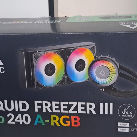Vähän reilu vuoden käytössä ollut valkoinen Arctic Liquid Freezer III 240mm A-RGB AIO. Myydään pois 360mm AIO:n päivityksen johdosta.