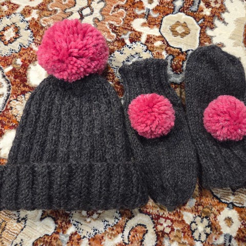 Stadium pipo 52-54 cm (95% puuvilla, 5% elastaani) ja Everest fleece-vuoratut kurahanskat 110-116 (4-6v) leppäkerttukuviota. Hyväkuntoiset, hanskojen pinta täysin ehjä.