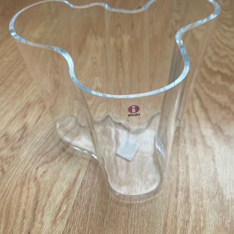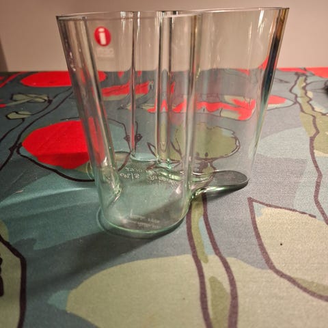 Iittala Aalto maljakko on aaltoilevamuotoinen lasimaljakko. Kukka sarjan ylin osa. Pieni kirppu ylhäällä. Ei haittaa käyttöä.