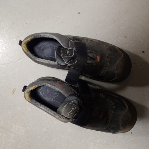 Jalas työkengät turvakärjellä, koko 43. Käytönjälkiä jonkinverran