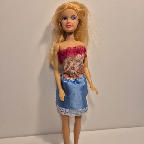 Tämä on surffaribarbie mutta surffilauta lähtenyt merivirtojen mukaan :) Nukke onkin saanut päälleen aidon barbiemekon.