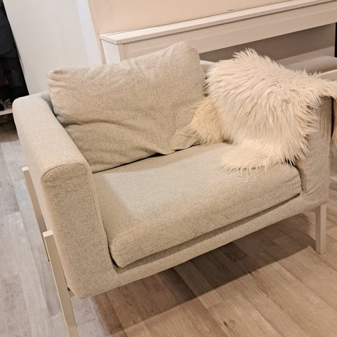 Tyylikkäällä, kestävällä kankaalla verhoiltu nojatuoli