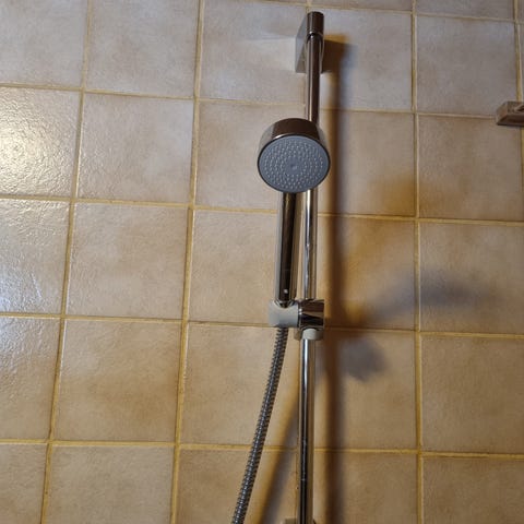 Suihkusetti, johon kuuluu käsisuihku ja joustava suihkuletku. Väri on kromi/metallinen. Sopii tavalliseen suihkuliitäntään kylpyhuoneessa tai wc-tilassa. Materiaali on muovi ja metalli, letku on suojattu metallipinnalla. Käytettävissä esimerkiksi suihkussa peseytymiseen tai siivouksen apuna.
