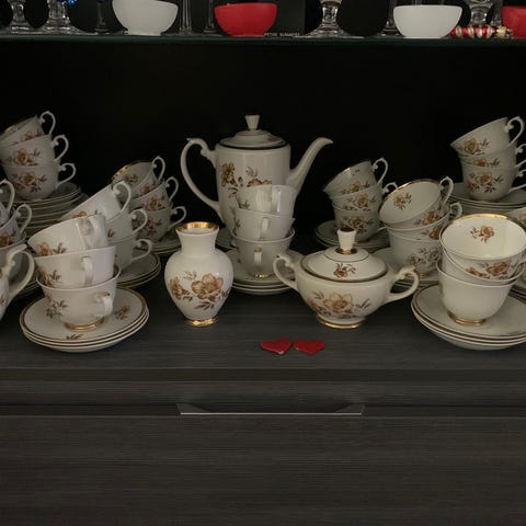 Hakusanat: astiat, kaadin, lautaset, arabian, design kuppi muki kupit lautanen astiasto kahviastiasto tassi asetti lautaset kupit mukit, lautanen, kultareunus, arabia, klassinen, kahvi, Valmistaja, kupit, myrna, kuppi, keittiötarvikkeet, muki, kukkakuvio, aterin, suomalainen muotoilu, tarjoilulautanen, keramiikka, aterimet, astiasto