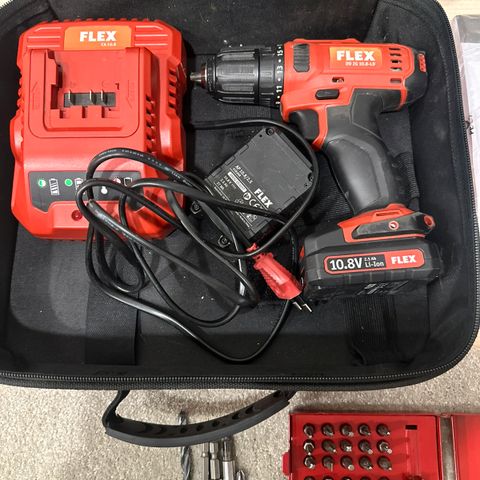 Täysin käyttämätön setti, jossa Flex DD 2G 10.8-LD Akkuporakone,