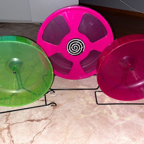 Mukana 2 eri kokosta juoksupyörää, ruokakuppeja, juomapulloja ja niiden pidikkeitä, ruoka mitta, mökkejä, silta, tunneli, matka boxi, kypyhiekka astia,.... voi myös ehdottaa hintaa tai kysyä tiettyä. 😁
