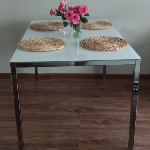 ruokapöytä lasikannella