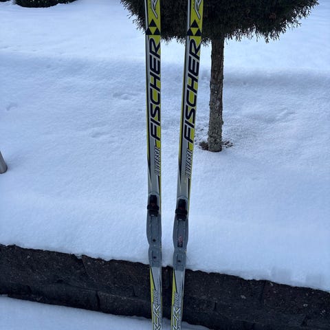 Fischer 140cm sukset NNN siteillä. Meillä ollut käytössä jäi lyhyeksi. Kohtslaisen kunto kyllä näillä hiihtää.