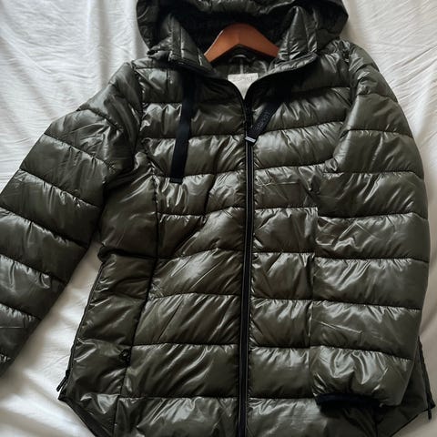 Esprit ultakevyt talvitakki, L koko luonnonvalkoinen. Oikea taskun vieressä 2cm "viilto". Olka olka n 40 cm, olka helma n 95 cm