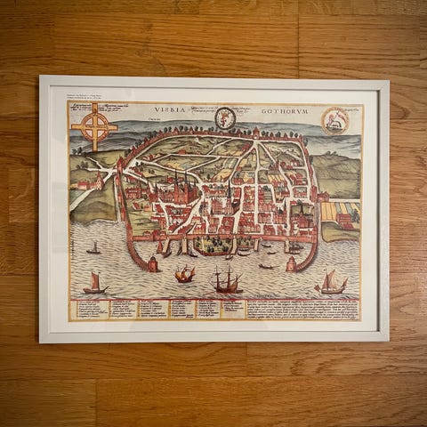 Sisustustaulu, jossa kuvana 1700-luvun kartta The Baltick Or East Sea. Taulun mitat noin 42 x 32 cm.