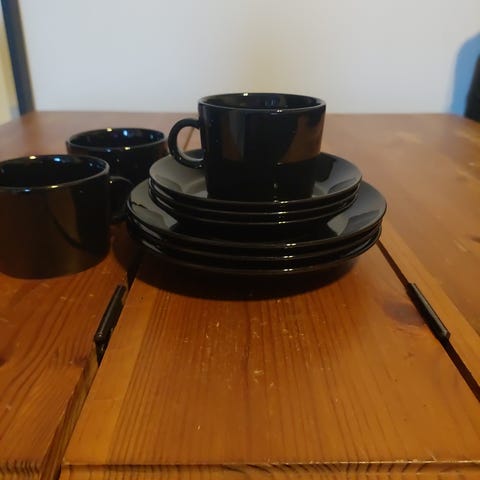 4 isoa lautasta ja 5 kahvikupit mukaan cocis lasit