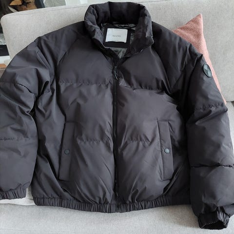 Bershka miesten talvitakki, koko M. Musta, kiiltävä polyesterikankaasta valmistettu toppatakki. Takissa on huppu ja etutaskut. Sopii miehille talvikäyttöön ja kylmään säähän.