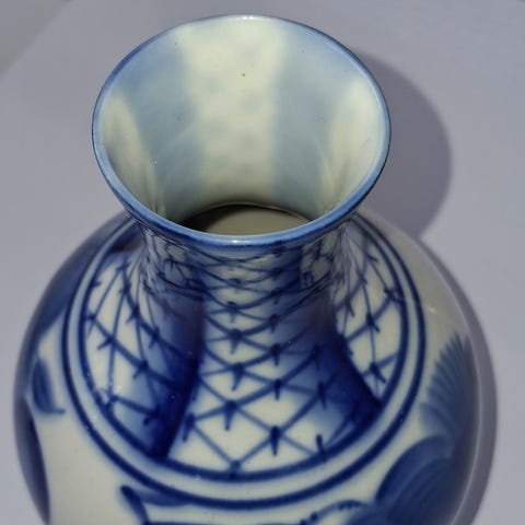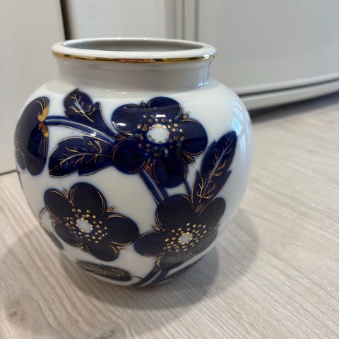 Myydään kolme pientä posliinimaljakkoa, jotka on valmistanut venäläinen Lomonosov-posliinitehdas.